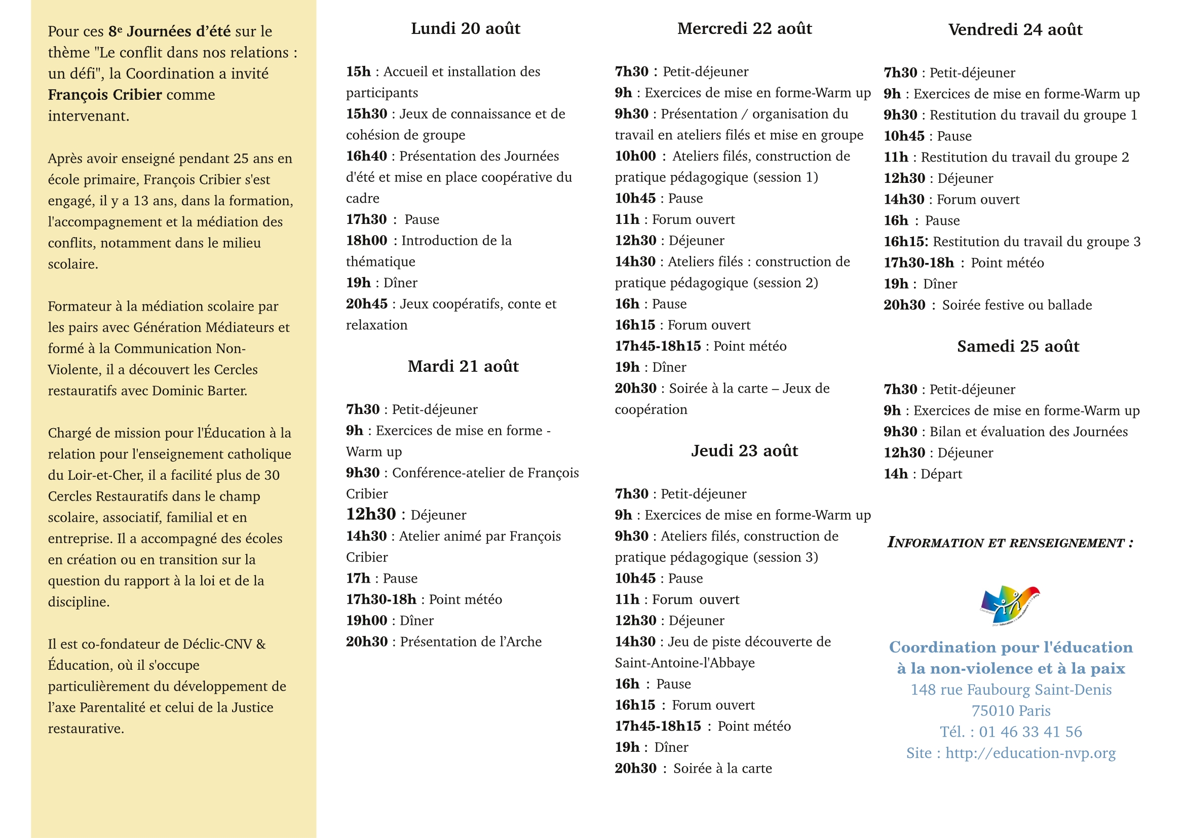 • Forum 2018 « Éduquer à la non-violence » le 17 novembre